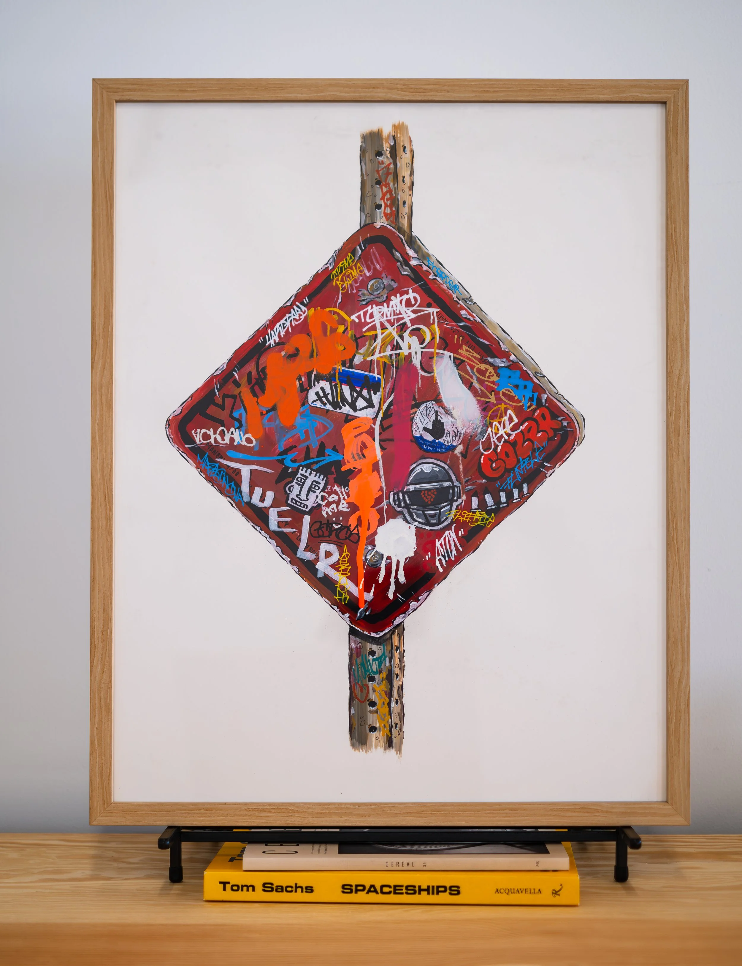 SIGNS.01 “RED” Acrylic & Mixed Media on Bristol PaperHigh Quality Natural Wood Frame w/ Plexiglass19in. x 24in. PREVIOUS / NEXT RETURN TO MAIN